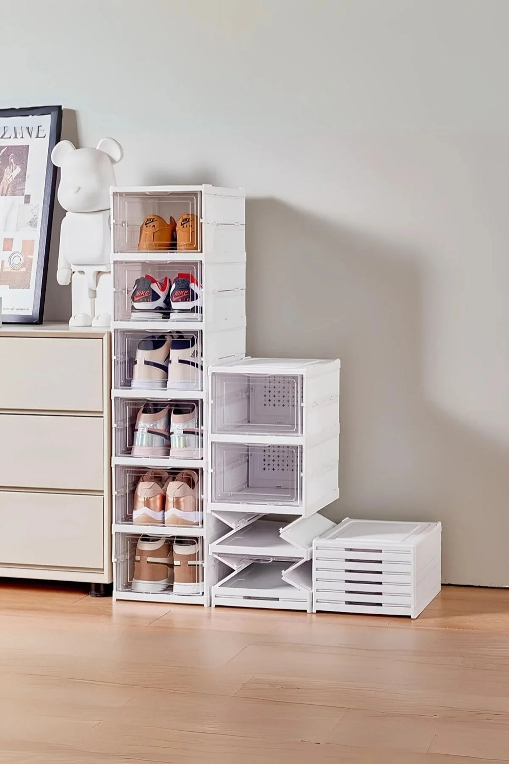 Ayakkabılarınızı düzenli, tozdan uzak ve kolayca erişilebilir tutmak için tasarlanmış modüler saklama kutuları. Şeffaf ön kapakları sayesinde hangi ayakkabının nerede olduğunu anında görebilirsiniz.