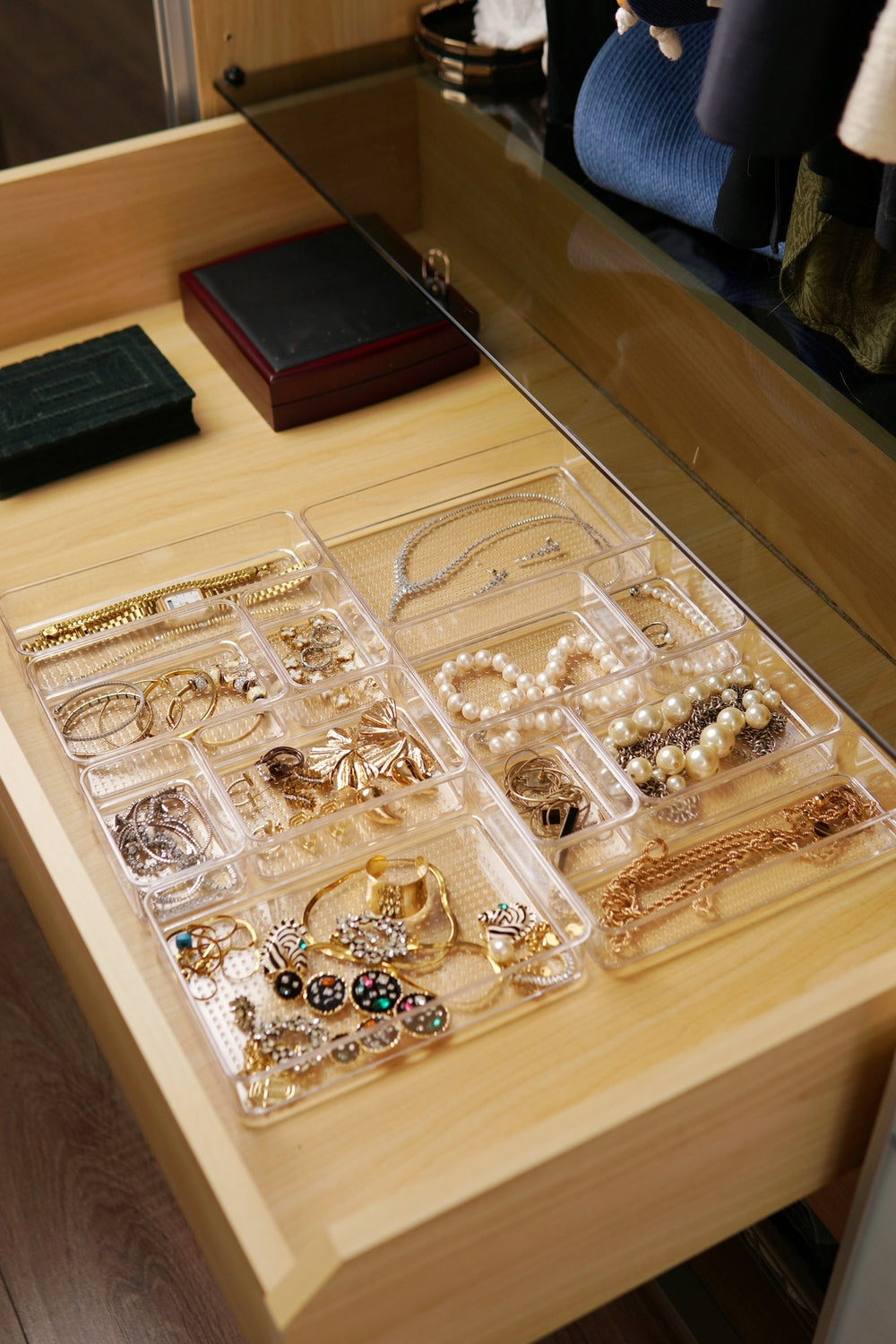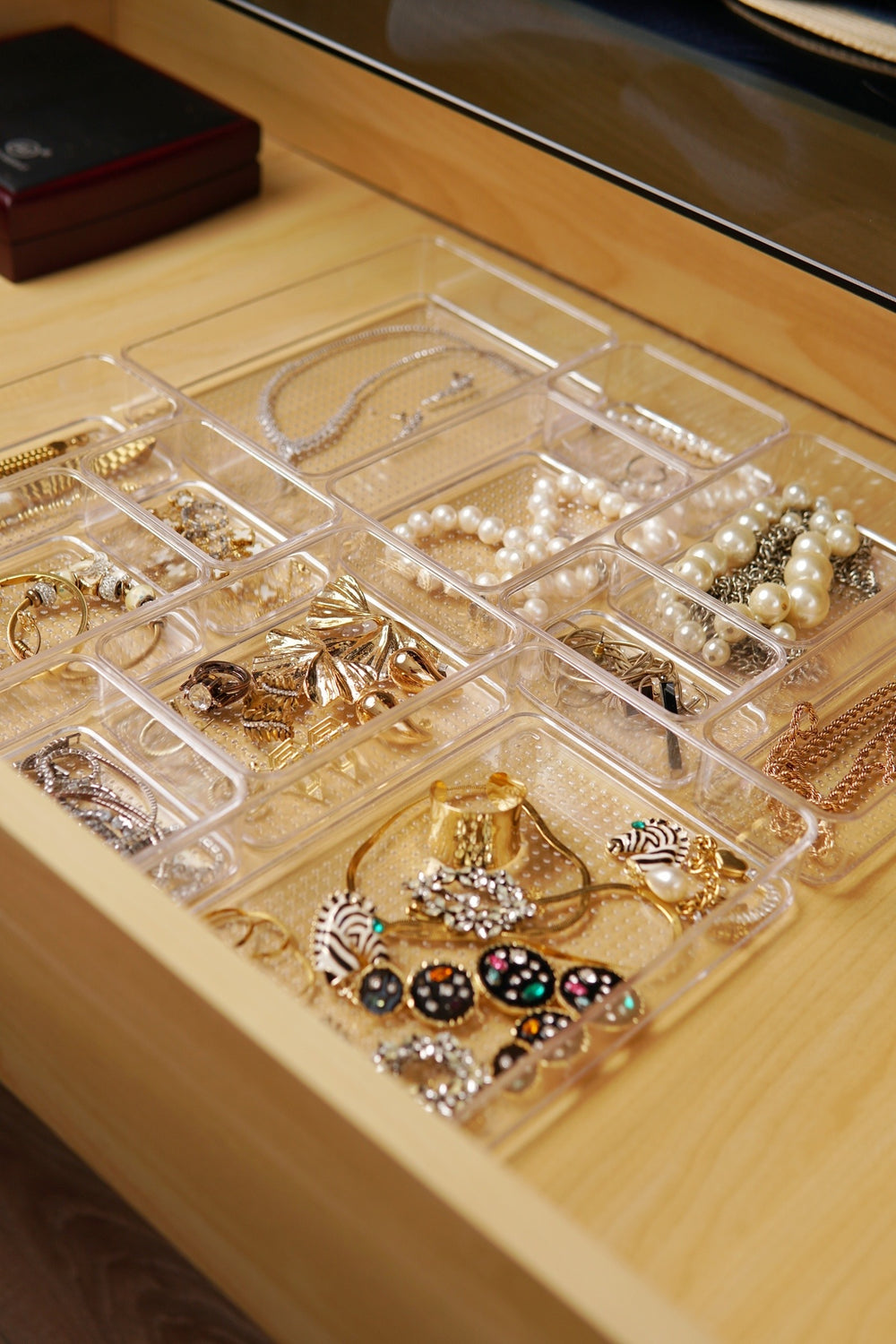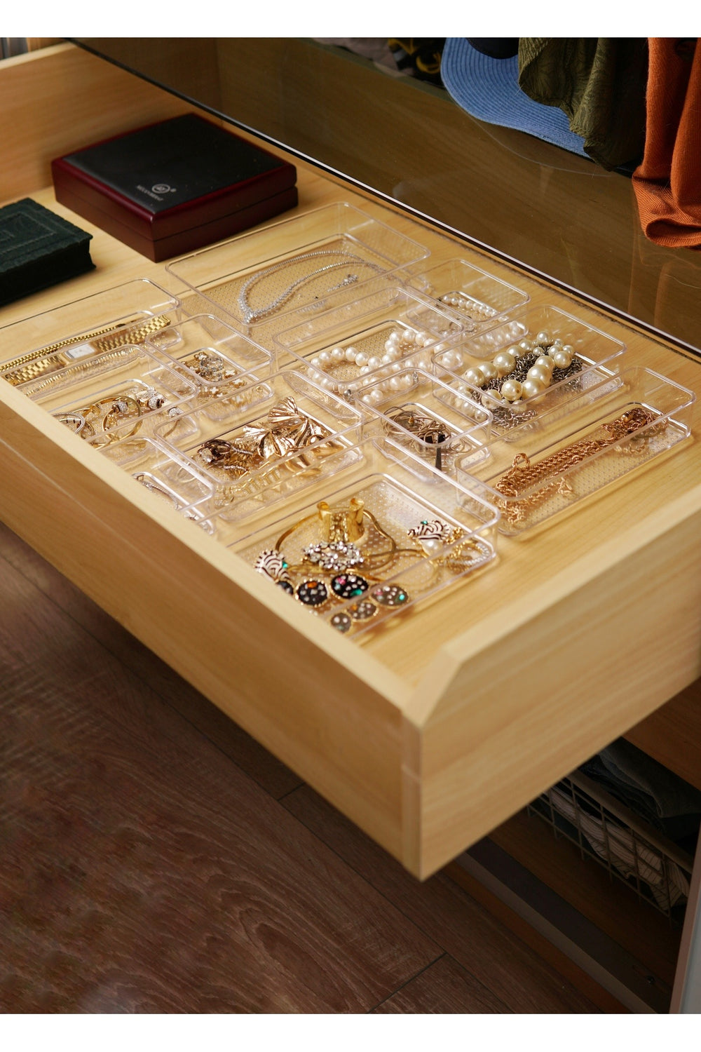 Bu zengin set içeriği, çekmecelerinizde tam anlamıyla kişiselleştirilmiş bir düzen kurmanızı sağlar. İster takılarınızı ister ofis malzemelerinizi ayırın, tüm eşyalarınız için yer açın.