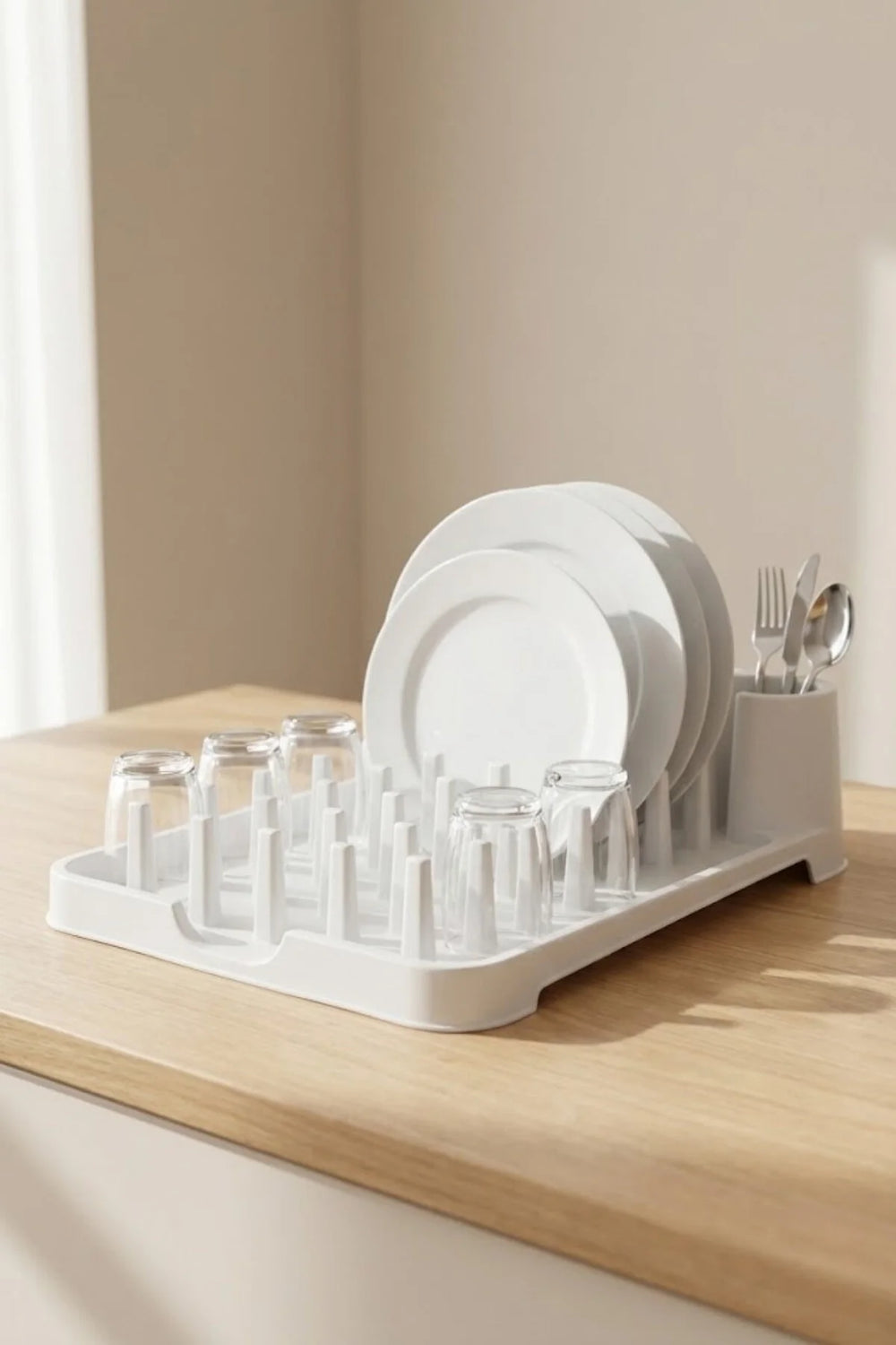 Görsellerdeki tabak, bardak ve çatal-kaşıklar sunum amaçlıdır. Paket içeriği yalnızca bulaşıklık/kurutma standından oluşur.
