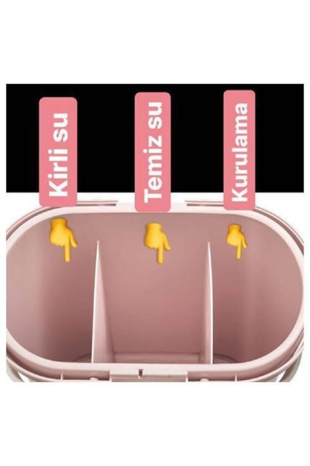 Kapak kısmında yer alan özel su kanalları sayesinde, sıkma işlemi sırasında akan kirli su, temiz su haznesini görmeden doğrudan kirli su bölümüne aktarılır. Bu sayede temizliğin son aşamasına kadar mopunuzu hep temiz su ile yıkarsınız.